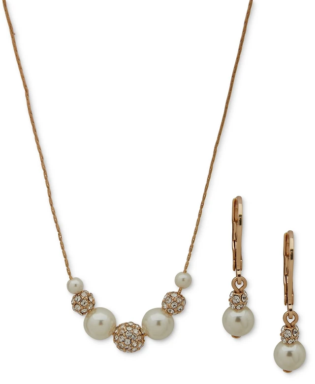 Anne Klein Gold-Tone Pave Fireball & Imitation Pearl Statement Necklace & Drop Earrings Set