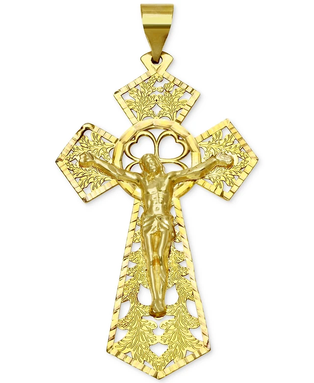 Cut-Out "Hope Love and Faith" Triple Layered Tilted Heart Outline Pendant in 14K Gold