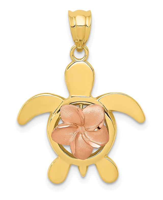 Pineapple With Plumeria Pendant in 14k Yellow and Rose Gold
