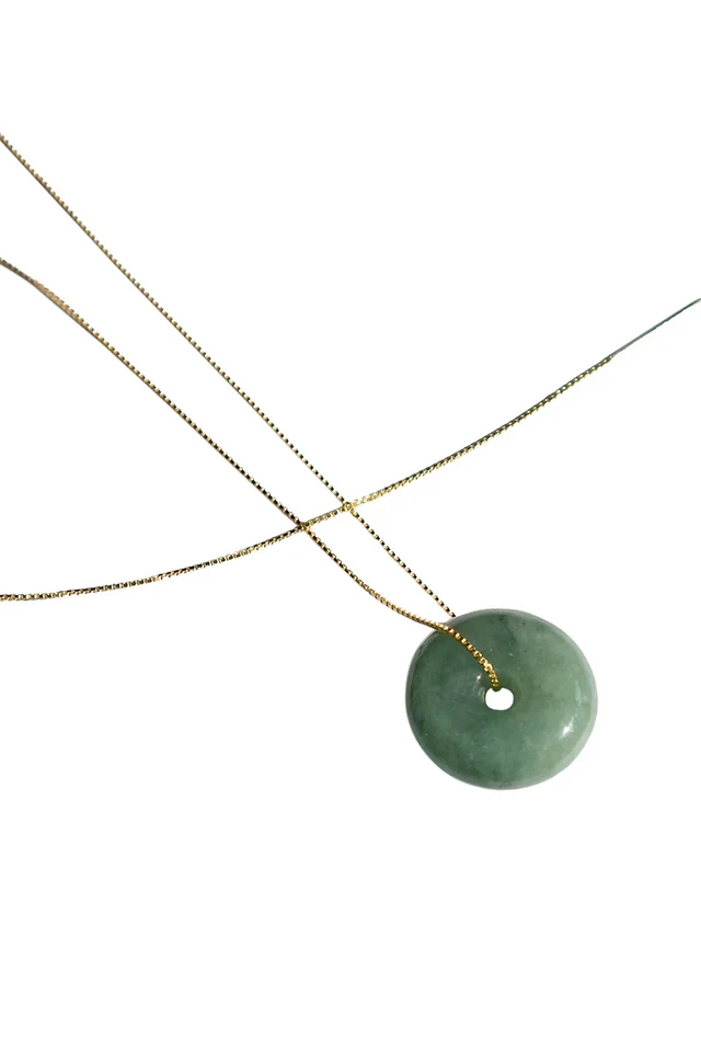 19.8mm Jade with Chinese "Fortune" Symbol Puff Circle Drop Pendant in Sterling Silver - 16"