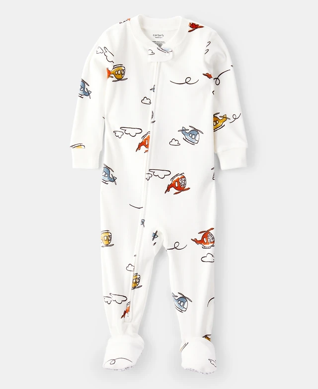 Carter's Baby Boys Helicopter-Print Loose-Fit Long-Sleeve 2-Way-Zip 1-Piece Footed Pajamas