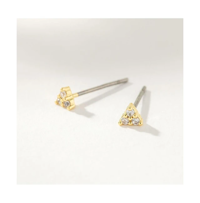 14k Gold-Plated Brass Cubic Zirconia Triad Ring, Set of 3