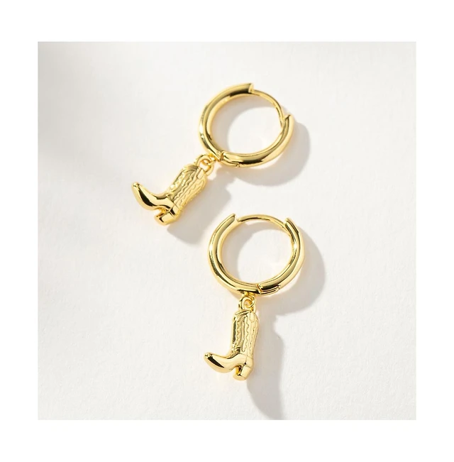 Uncommon James 14K Gold-Plated Cowboy Boot Huggies, 0.5"
