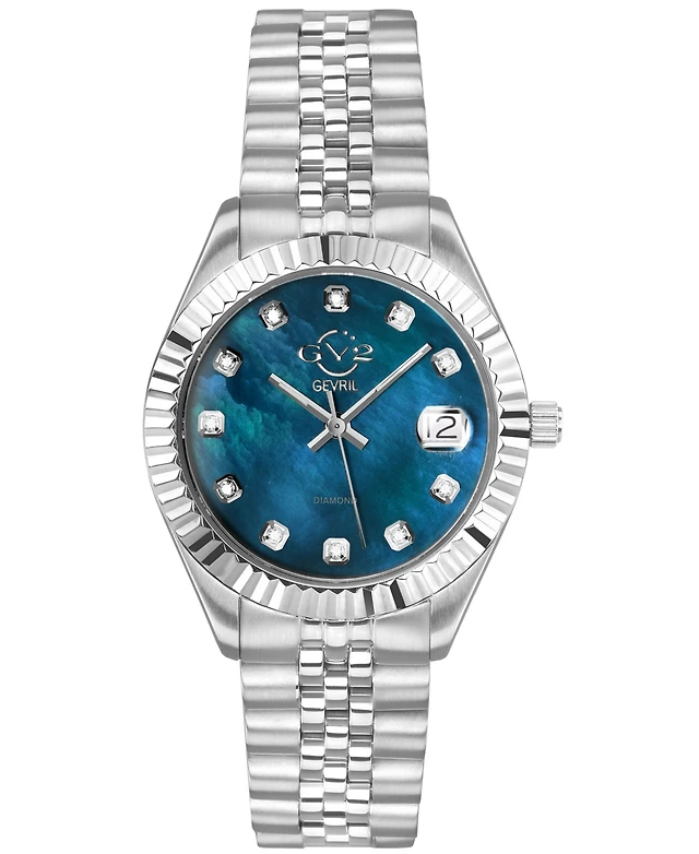 GV2 by Gevril Women's Padova Gemstone Swiss Quartz Diamond Accent Silver-Tone Stainless Steel Bracelet Watch 27mm x 30mm