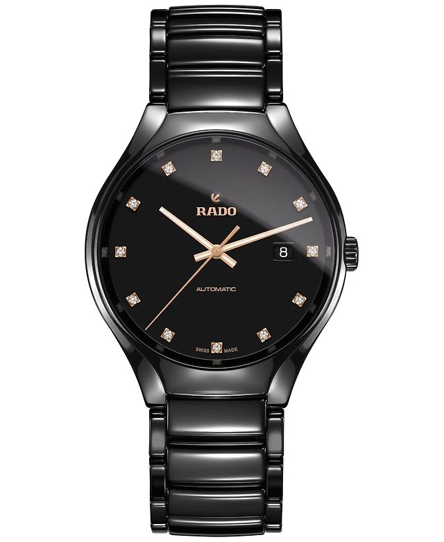 Rado Unisex Swiss Automatic True Diamond (1/8 ct. t.w.) Black Ceramic Bracelet Watch 40mm