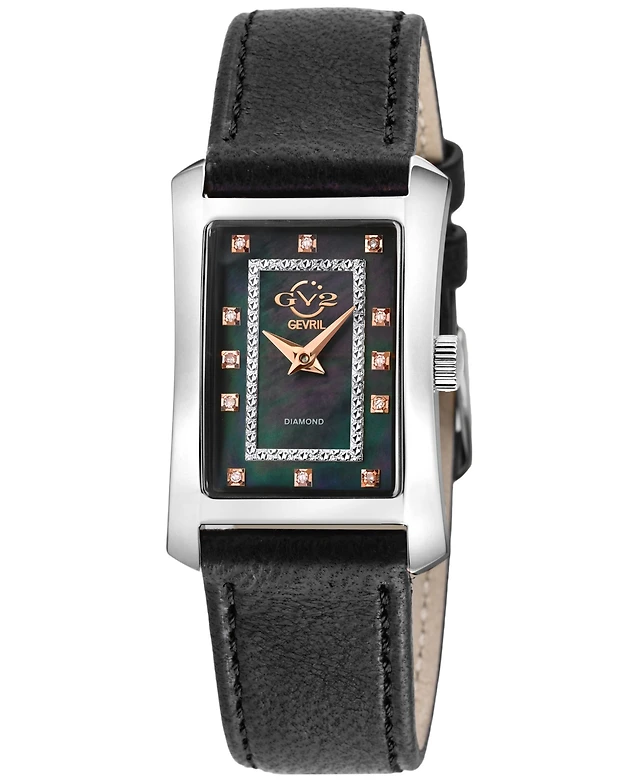GV2 by Gevril Women's Luino Swiss Quartz Diamond Accents Black Handmade Italian Leather Strap Watch 23mm x 29mm