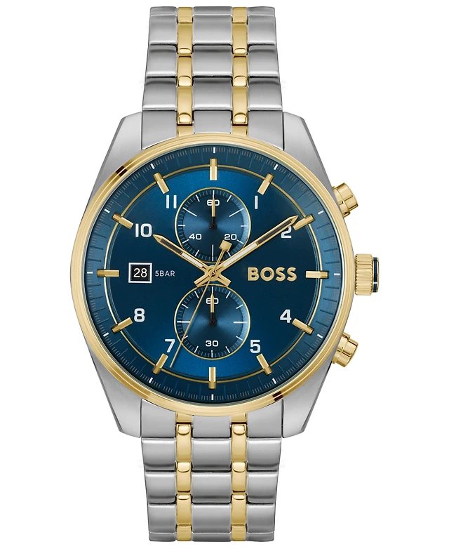 Hugo Boss Men's Skytraveller Quartz Chronograph Ionic Plated Thin Two-Tone Stainless-Steel Watch, 44mm
