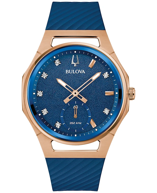 Frederique Constant Women's Swiss Art Deco Diamond (1/10 ct. t.w.) Blue Satin Strap Watch 30mm
