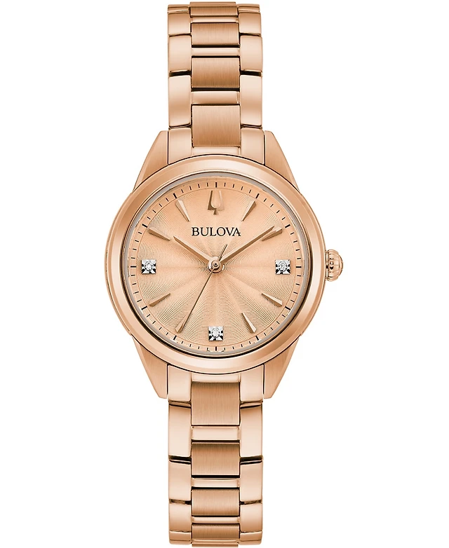Bulova Women's Classic Diamond-Accent Rose Gold-Tone Stainless Steel Bracelet Watch 36mm