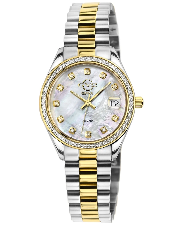 GV2 by Gevril Women's Naples Swiss Quartz Diamond Two-Toned Ss Ipyg Stainless Steel Bracelet Watch 32mm