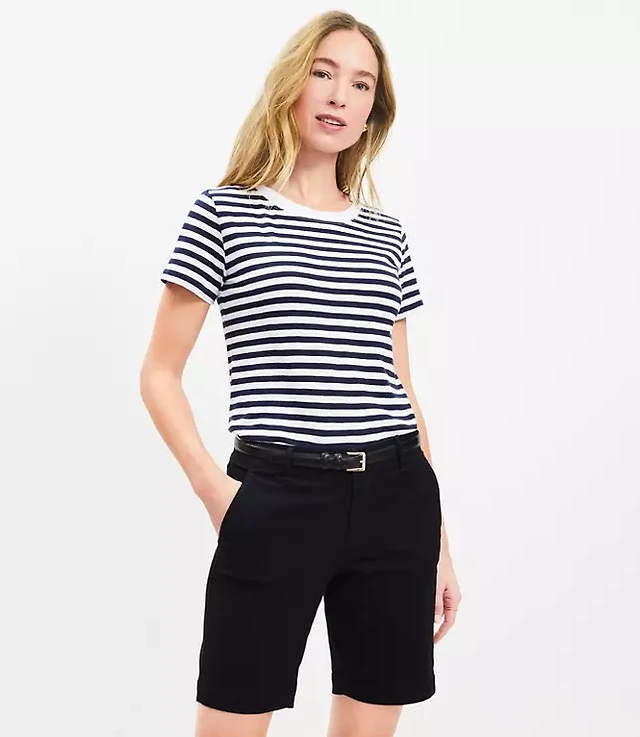 Pleated Trouser Shorts in Pinstripe Linen Blend