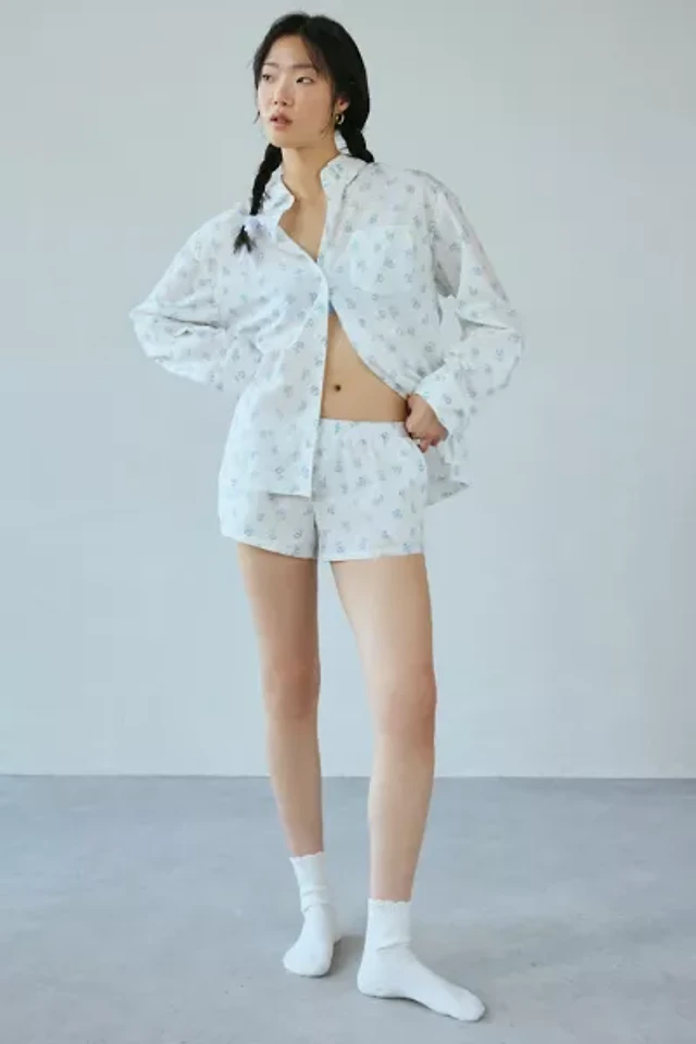 Edikted Rye Sheer Textured Fold Over Shorts