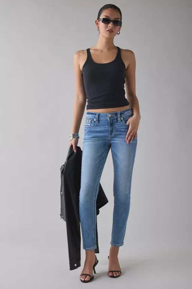 Mid Rise Gray Wash Skinny Jeans