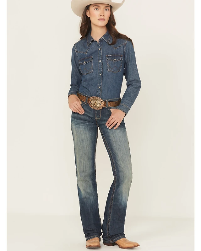 Wrangler Women's Medium Wash Westward Mid Rise Bootcut Stretch Denim Jeans