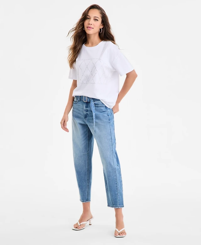 Rock & Roll Denim Women's Medium Wash High Rise Rhinestone Cropped Straight Jeans