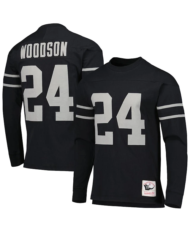 Men's Mitchell & Ness Charles Woodson Black Oakland Raiders Retired Player Name and Number Long Sleeve Top