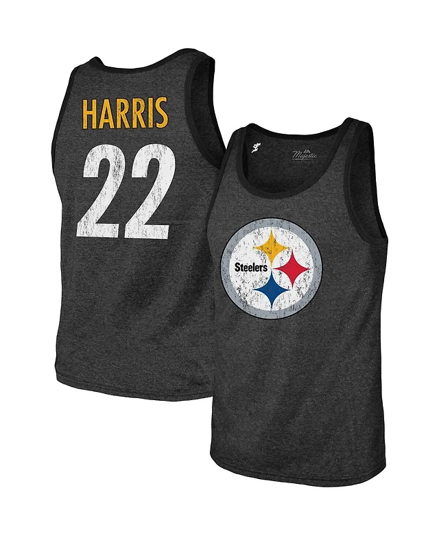 Men's Majestic Threads Najee Harris Heathered Black Pittsburgh Steelers Player Name and Number Tri-Blend Tank Top