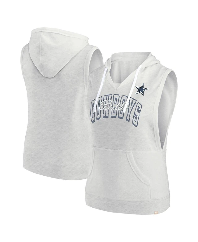 Fanatics Women's Oatmeal Dallas Cowboys Lounge Script Sleeveless V-Neck Pullover Hoodie