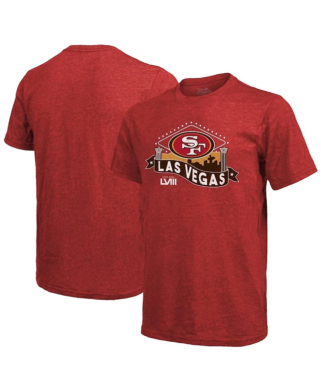 Men's Majestic Threads Scarlet San Francisco 49ers Super Bowl Lviii Tri-Blend Long Sleeve T-shirt