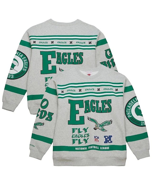 Mitchell & Ness Men's Heather Gray Philadelphia Eagles All Over Print Fleece Crewneck Sweatshirt