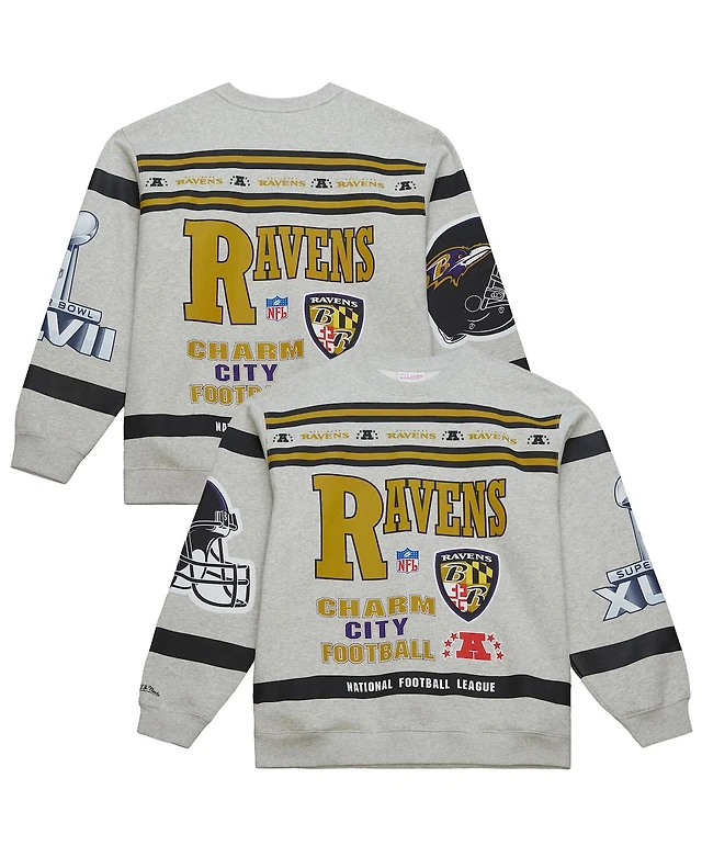 Mitchell & Ness Men's Heather Gray Kansas City Chiefs All Over Print Vintage Fleece Crewneck Sweatshirt