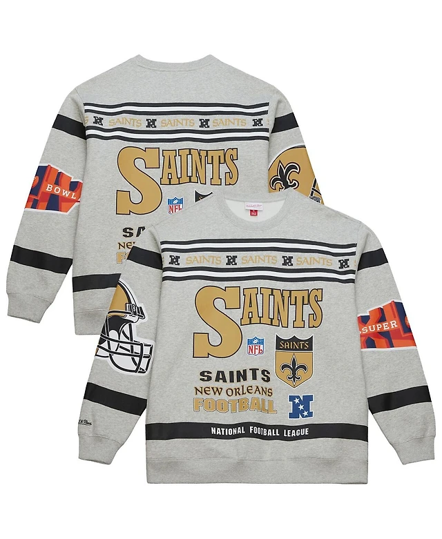 Mitchell & Ness Men's Heather Gray New Orleans Saints All Over Print Vintage Fleece Crewneck Sweatshirt
