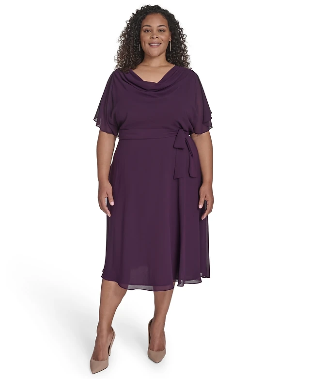 Jessica Howard Plus Boat Neck Asymmetric Side Ruched Midi Dress