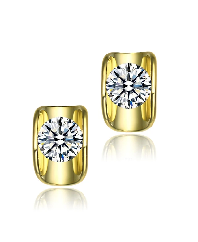 Rectangle-shaped 14k Gold-plated Chain With Round-brilliant stones Pendant Cubic Zirconia In Sterling Silver.