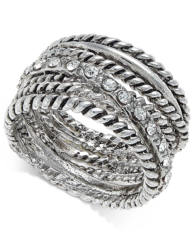 Charter Club Crystal All-Around Ring Fine Silver Plate, Created for Macy's