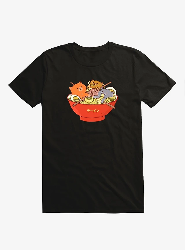 Ramen And Cats Black T-Shirt