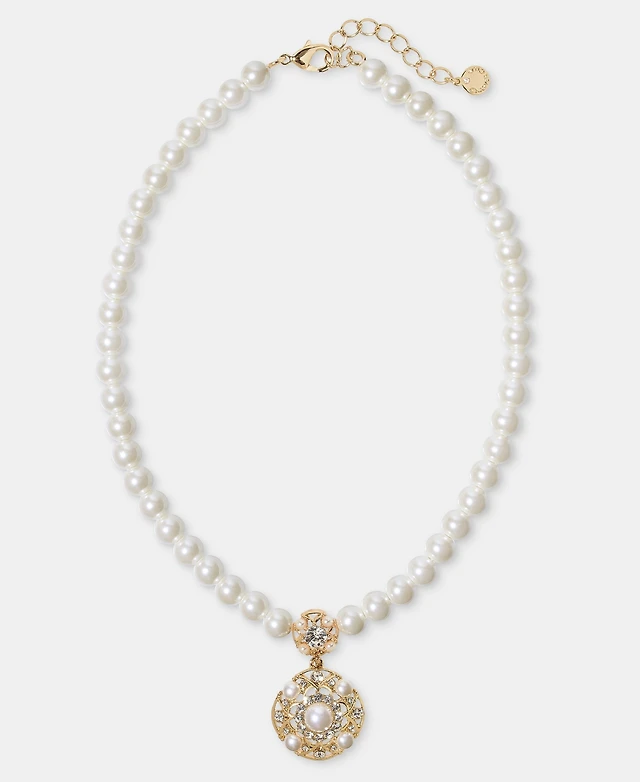 Crystal & Imitation Pearl Statement Pendant Necklace, 16" + 2" extender