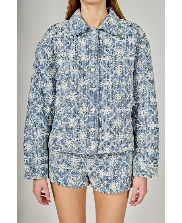 Masai Copenhagen Women's Long Sleeve Velvet Collared Denim Jacket