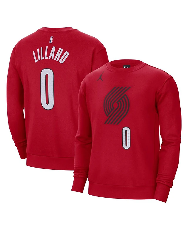 Men's Jordan Damian Lillard Red Portland Trail Blazers Statement Name and Number Pullover Sweatshirt