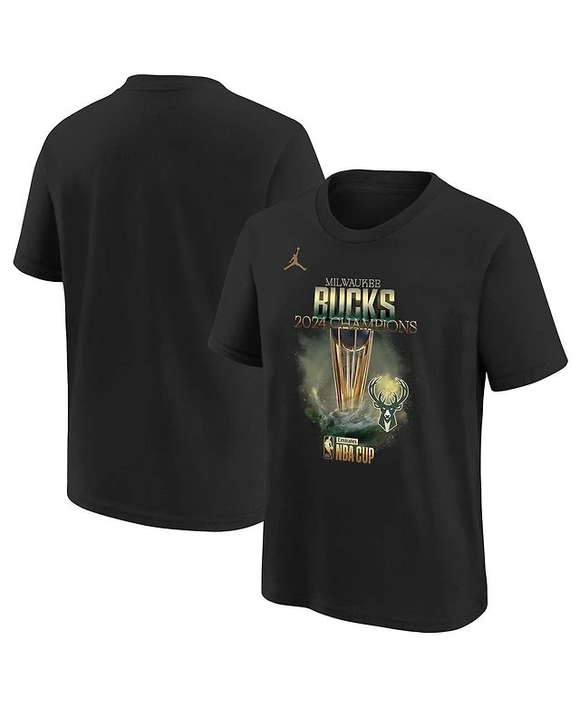 Jordan Big Boys and Girls Black Milwaukee Bucks 2024 Nba Cup Champions Locker Room T-Shirt