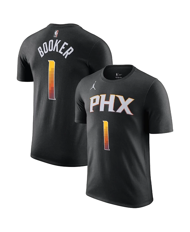 Men's Jordan Devin Booker Black Phoenix Suns 2022/23 Statement Edition Name and Number T-shirt