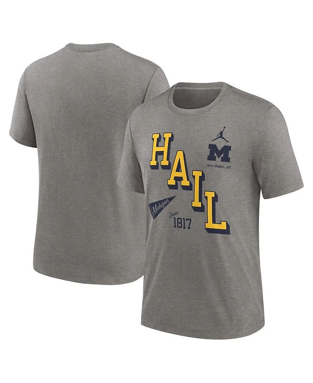 Jordan Men's Heather Gray Michigan Wolverines Blitz Roll Call Tri-Blend T-Shirt