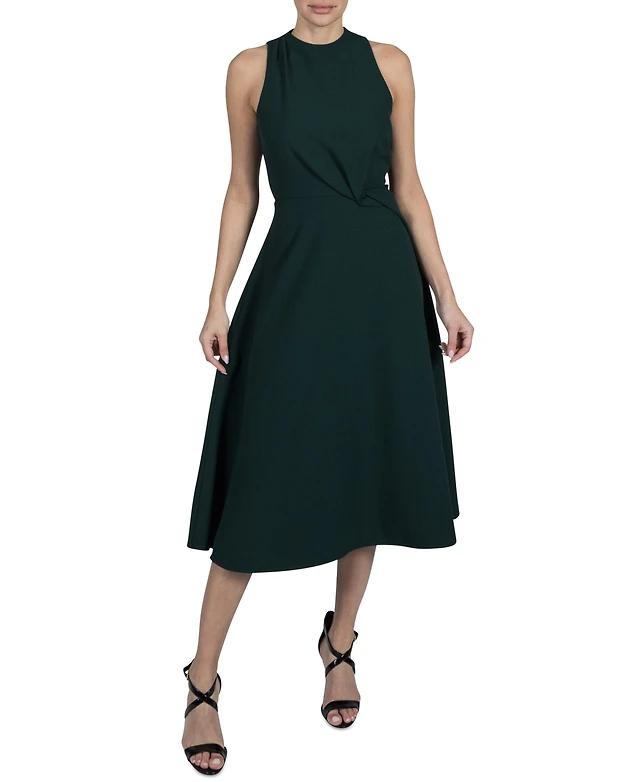 julia jordan Women's High-Neck Flounce-Sleeve Midi Dress