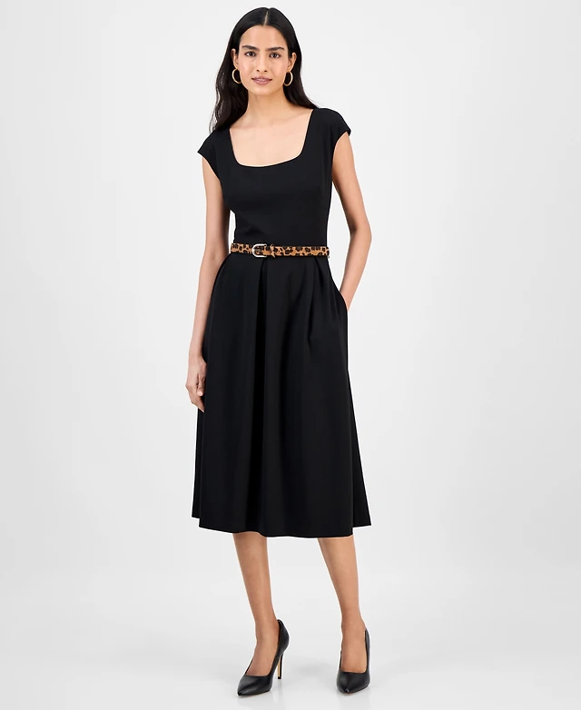 julia jordan Women's Faux-Suede Sash-Belt Notch-Lapel Dress