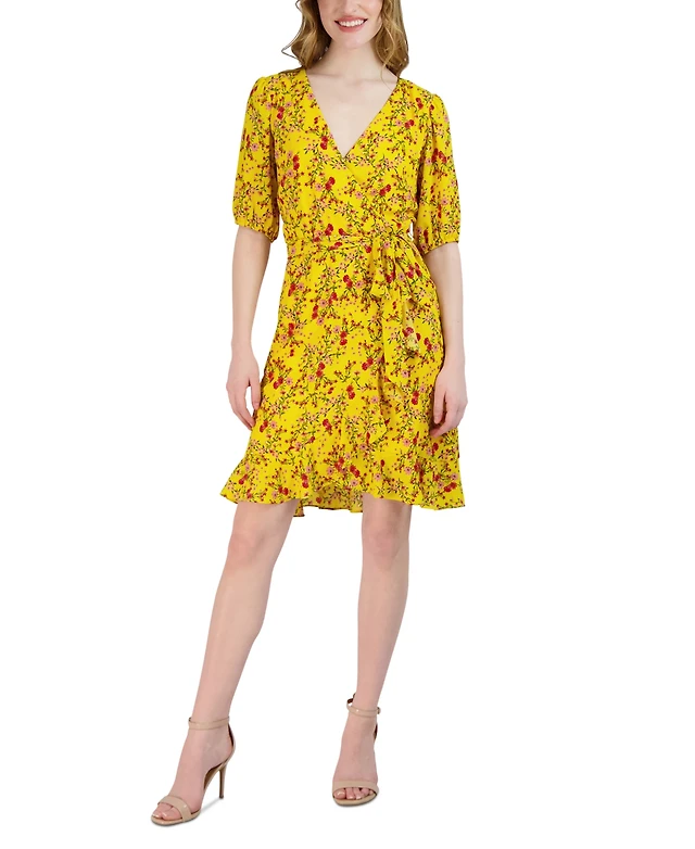 julia jordan Women's Printed Faux-Wrap Tie-Waist Dress