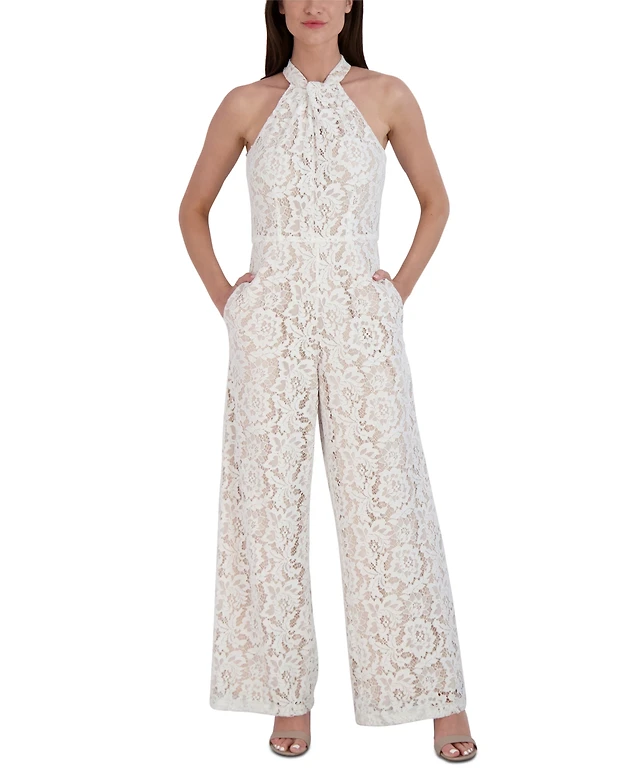 julia jordan Women's Sequin-Lace Halter Twist-Neck Jumpsuit