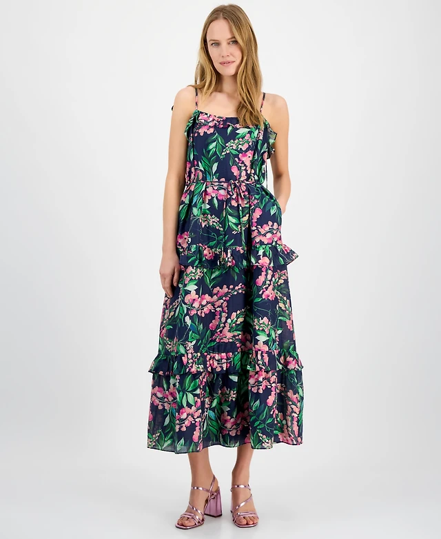 julia jordan Women's Tie-Shoulder Sleeveless Ruffle-Trim Maxi Dress