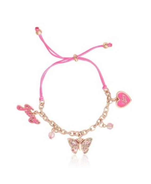 Juicy Couture Pink and Gold Charm Bracelet with Bow, Dog, and Heart
