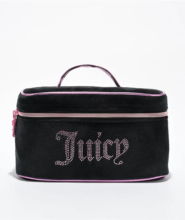 Juicy Couture Rhinestone Logo Black Velour Makeup Bag