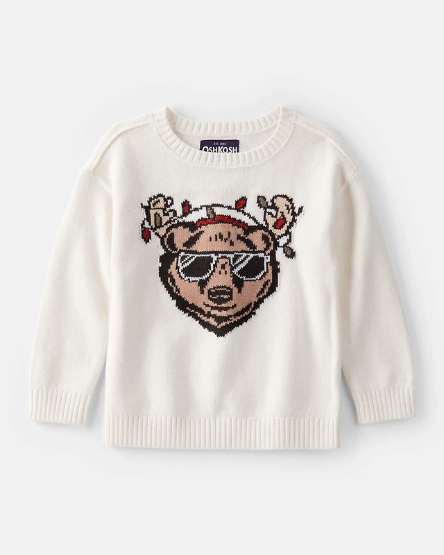 Toddler Boy Christmas Bear Long-Sleeve Pullover Sweatshirt - White