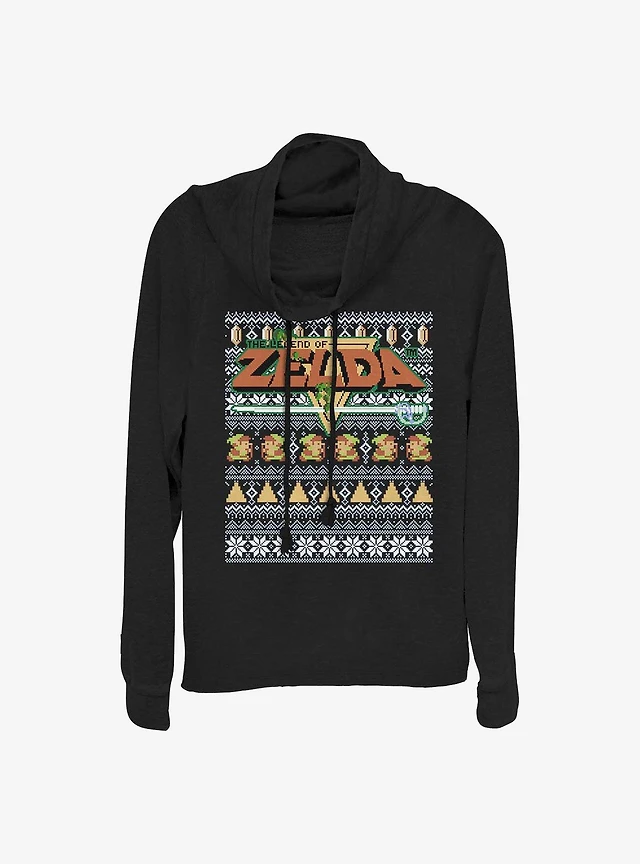 Nintendo Legend Of Zelda Tight Forces Christmas Print Cowl Neck Long-Sleeve Girls Top