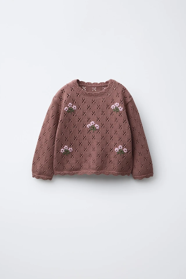Baby Girl Floral Fairisle Sweater- Pink/White