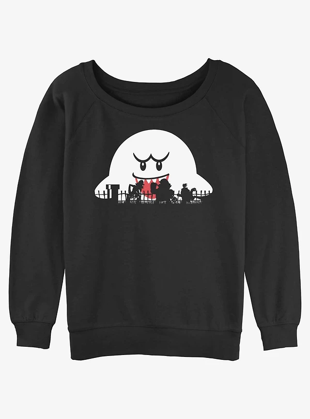 Nintendo Mario Big Boo Silhouettes Girls Slouchy Sweatshirt