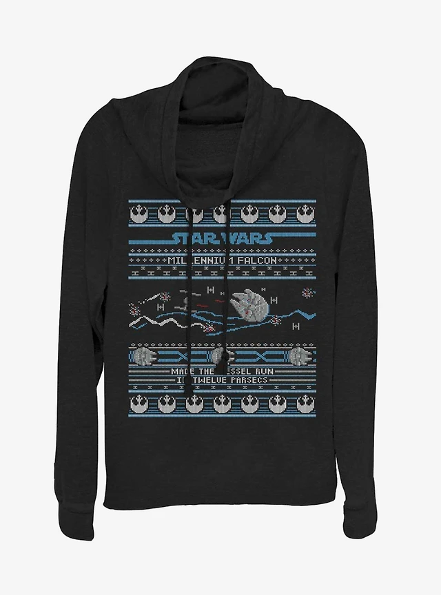 Star Wars Falcon Attack Ugly Sweater Cowl Neck Long-Sleeve Girls Top