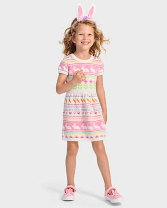 Hope & Henry Toddler Girls Long Sleeve Bow Detail Intarsia Sweater Dress
