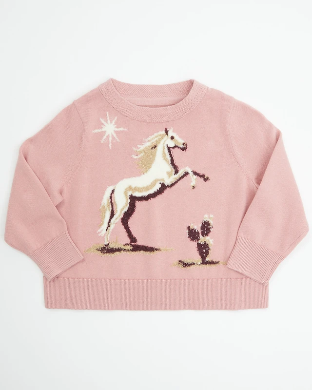 Deux par Toddler Girls Llama Jacquard Sweater Dusty Pink - Toddler|Child